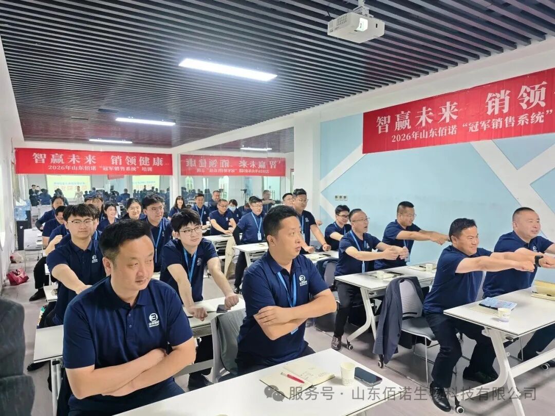 智赢未来,销领健康;凝心聚力,共赴新程!2026年,山东佰诺将以本次培训为起点,持续聚焦业务团队赋能,不断完善“冠军销售系统”,助力每一位销售伙伴实现自我突破,以专业铁军之力,深耕大健康市场,传递健康价值,共筑健康事业新辉煌!