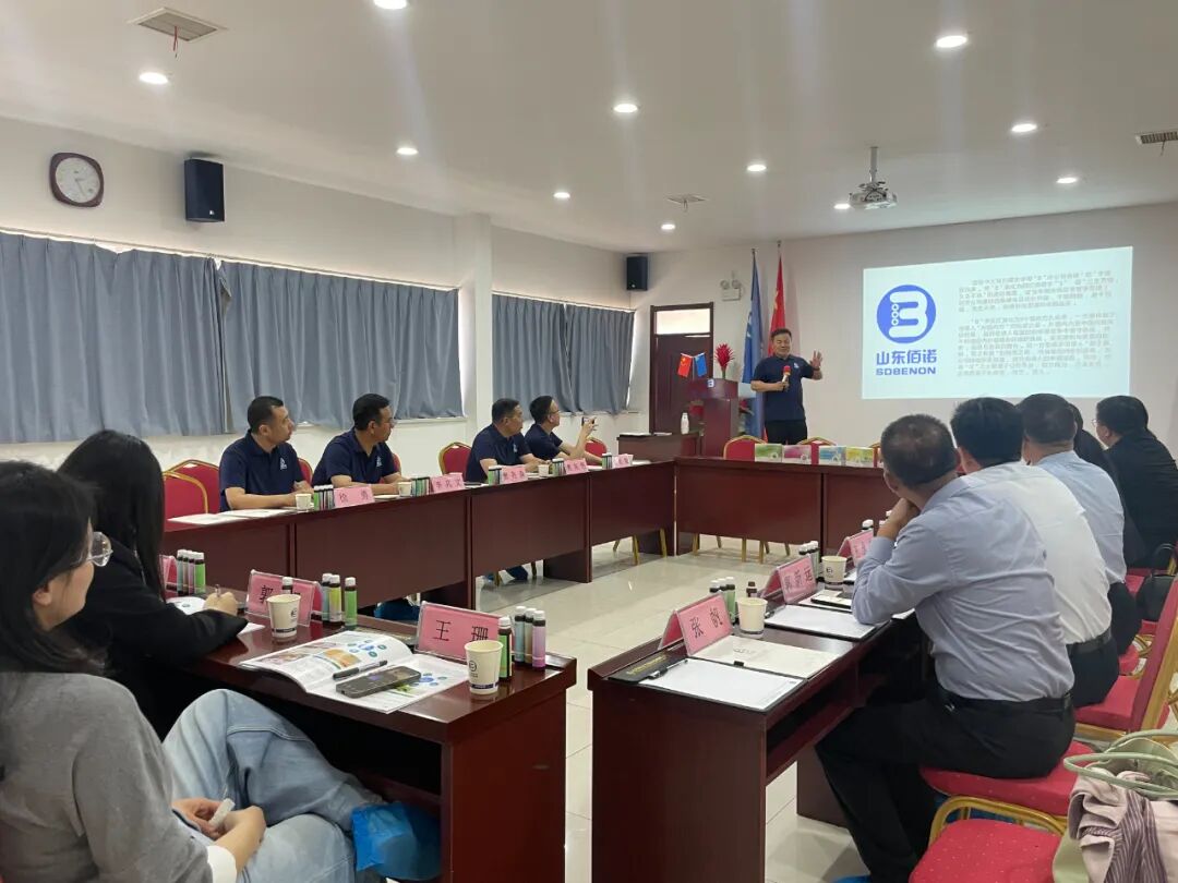 随后,考察团移步公司一期开展专题座谈交流会。座谈会上,樊兆森董事长首先对各位领导专家的到来表示热烈欢迎,并系统介绍了山东佰诺的发展历程、核心产品体系、科研创新成果及未来在大健康全产业链的战略规划。他特别提到,公司始终坚持以科技创新为驱动,以高品质产品服务于全民健康,并期待能与各方在多个层面展开深度合作。